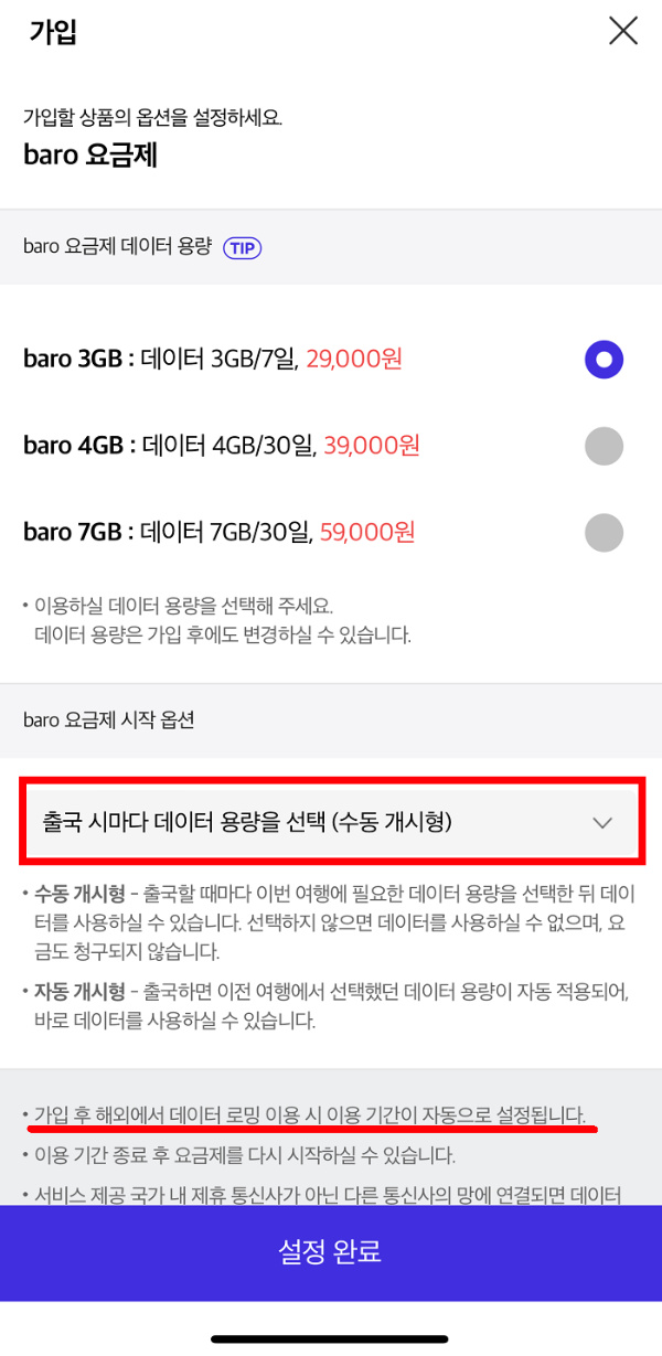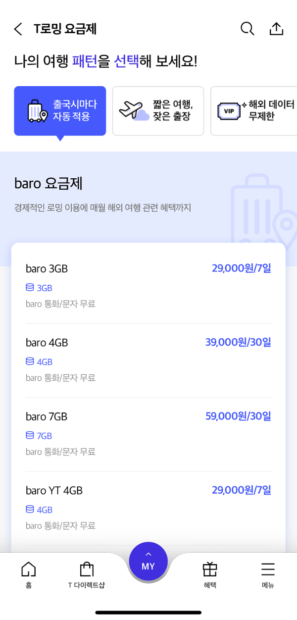 만약 나의 여행기간이 3일 이상이라면 무조건 바로 로밍요금제로 추천합니다.
