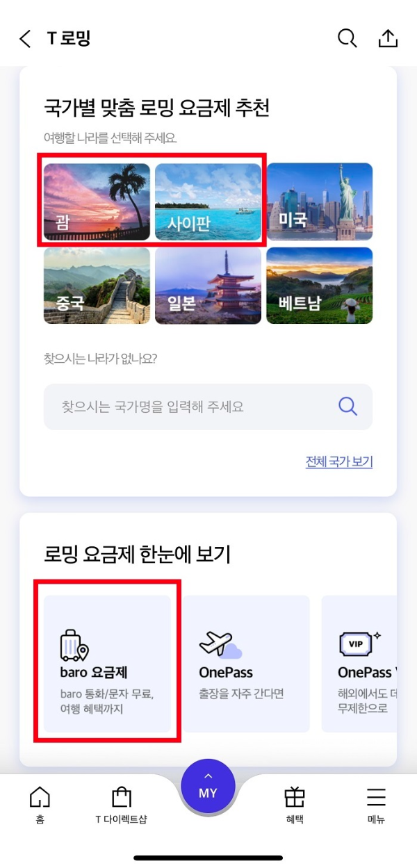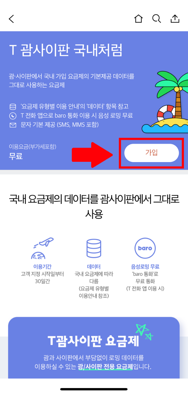 만약, 여행 가시는 곳이 괌/사이판이라면 제휴로 인해 무료로 데이터를 이용할 수 있습니다.