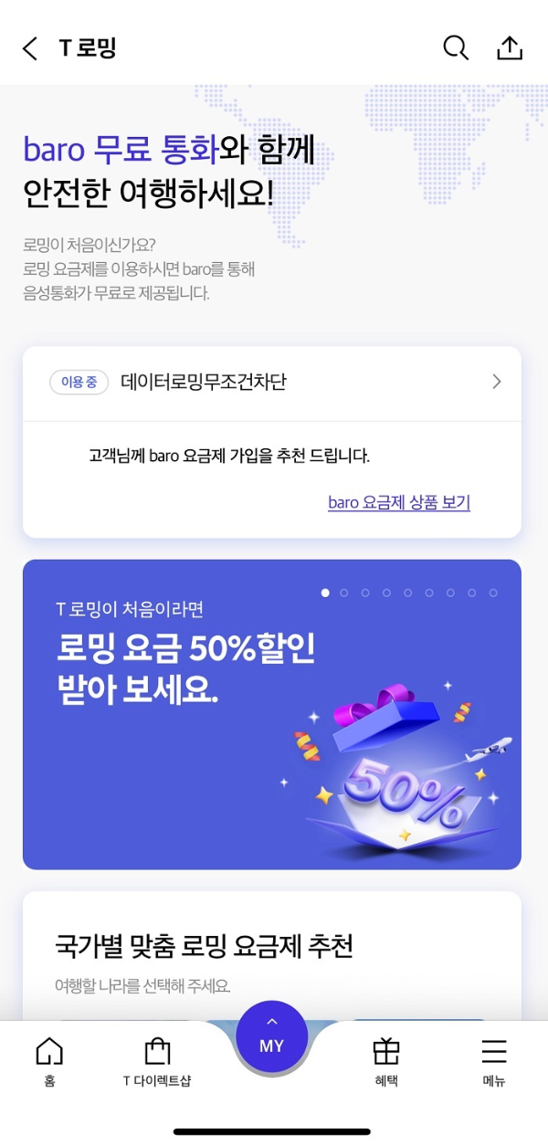 로밍으로 들어가면 이렇게 메인화면이 뜹니다. 아래로 내리시면,