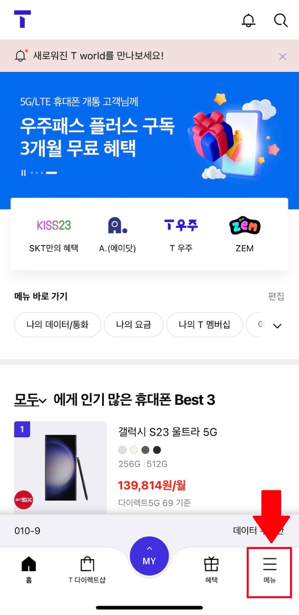 핸드폰에 있는 "T월드"앱으로 로그인을 하세요.