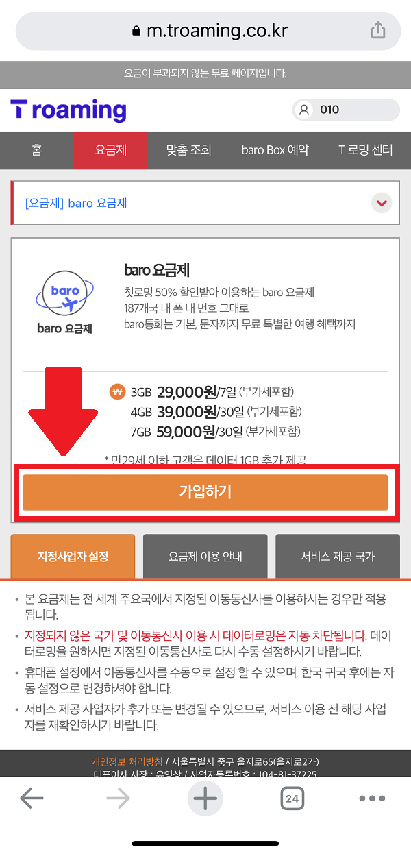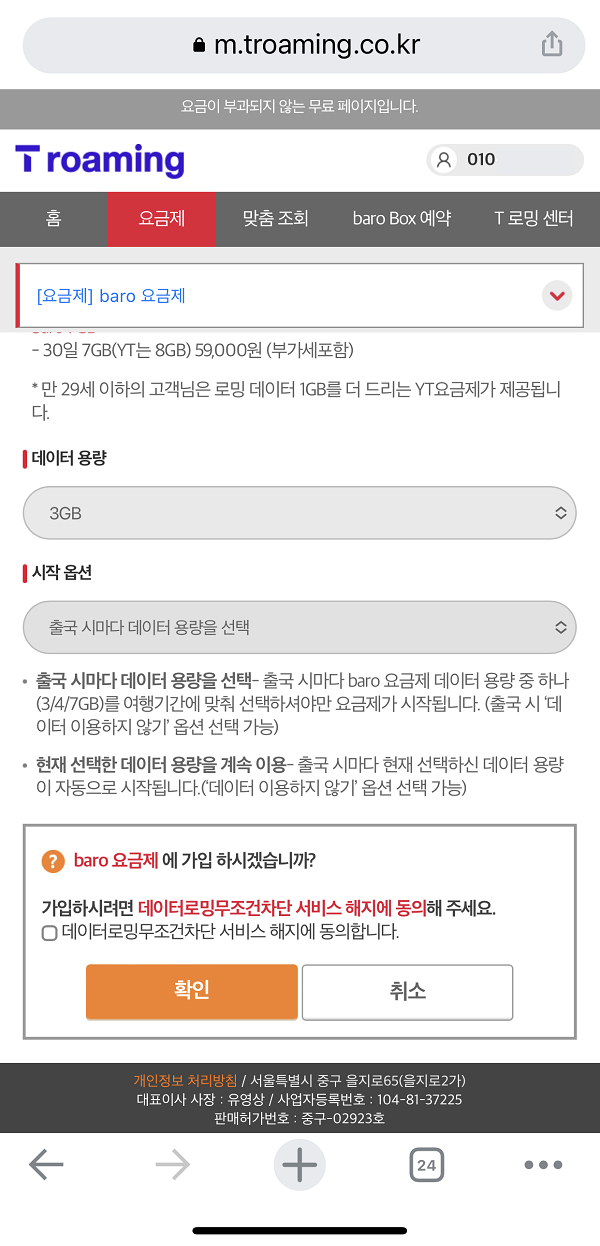 만약 내가 가는 곳이 "괌/사이판"이거나 짧게 1,2일 여행 가시는 것이 아니라면 baro요금제를 추천합니다.