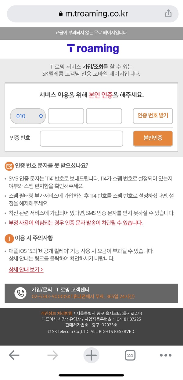 SK로밍 모바일 신청방법, 법인폰 티로밍 이렇게 하세요.