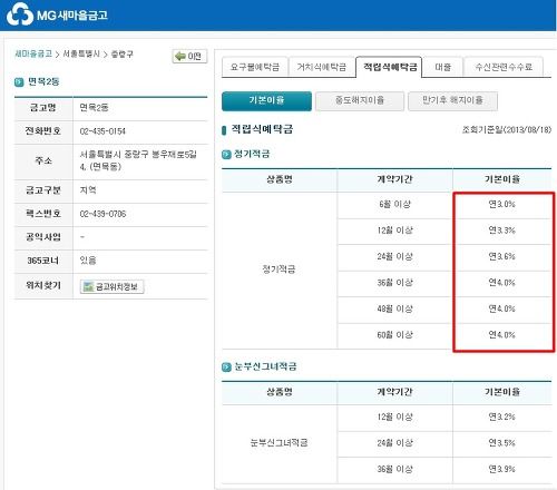 이렇게 비과세가 적용되는 새마을 금고는 시중은행들과 달리 지점마다 금리가 다른건데요,