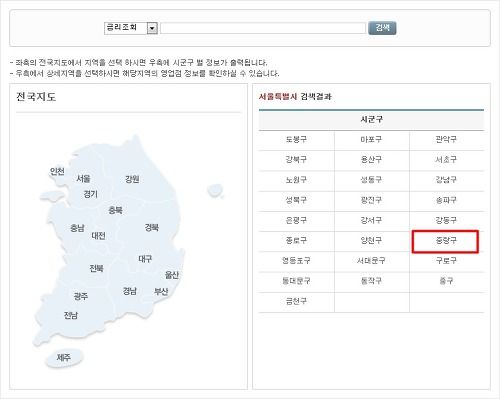 여기서 원하는 지역을 클릭하시면 되는데요, 저는 중랑구에 거주하니..중랑구를 클릭할께요^^