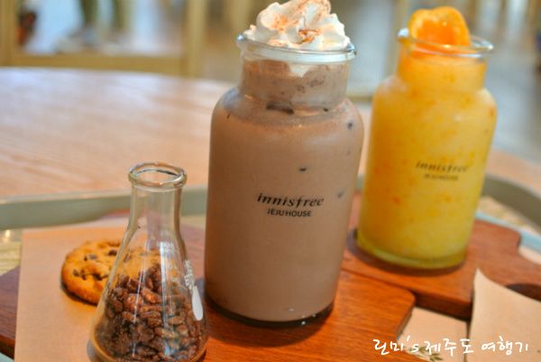 아이스초코와 한라봉쥬스(맞나?ㅋㅋ) 정말 이쁘게 나오죠?? 이 유리잔 완전 탐나더라구요!!+ㅁ+ 어디서 구할 수 있져?ㅋ 갖고싶다는!!!! 아이스초코를 주문하니 비커에 과자까지!ㅎㅎㅎ너무 귀여워요~~