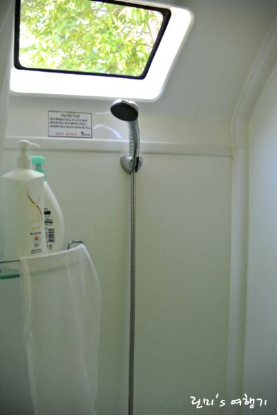 샤워기도 있구요. 단, 처음에 틀때는 수압이 매우 약해서 한참 기다려야 해요. 다 나와도 그다지 세지 않다는...그리고 여기만 그런가..뜨거운물을 트실려면 파란쪽으로 돌려야 합니다^^;; 반대에요..ㅋㅋ